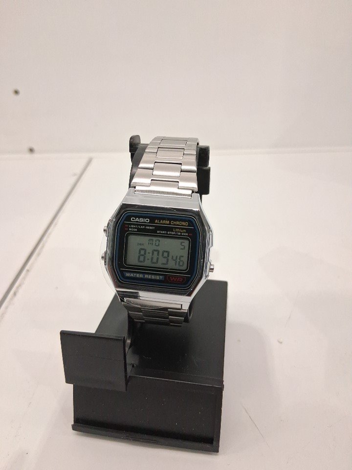MEN'S CASIO CLASSIC DIGITAL QUARTZ MOVEMENT STAINLESS STEEL BRACELET WATCH - 33MM - SILVER (MODEL: A158WA-1CR)