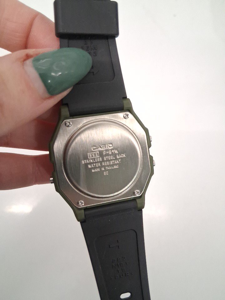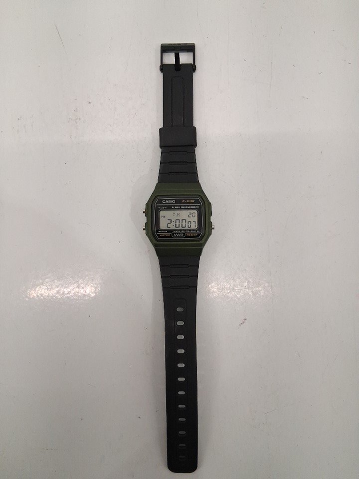 MEN'S CASIO VINTAGE CASUAL WATCH WITH RESIN STRAP - 35.5MM - BLACK/GREEN (MODEL:F-91WM-3ACF)