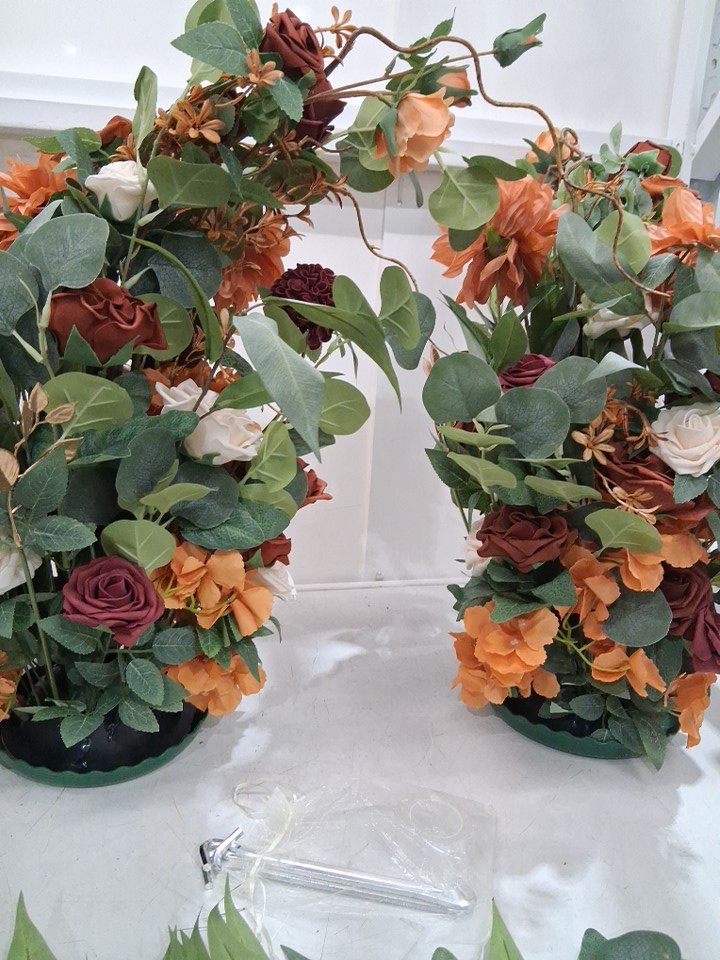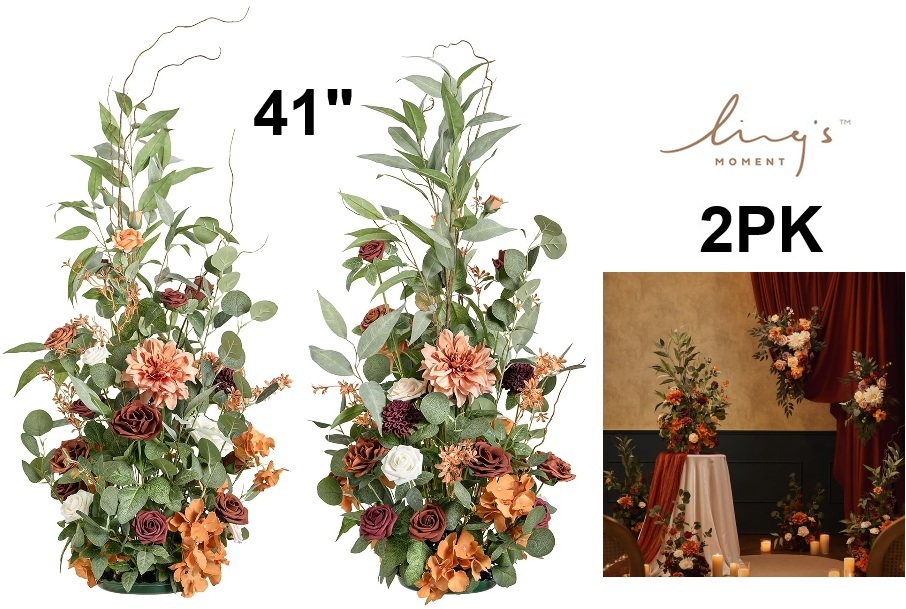 2pk lings moments Handcrafted Tall Fall Free Standing Artificial Flowers Arrangements for Wedding Ceremony Church Backdrop, Aisle, Altar Stage- 14" - floral /terracotta /Orange multi colour (model:‎ALDPLUS-TRTBUR-2)