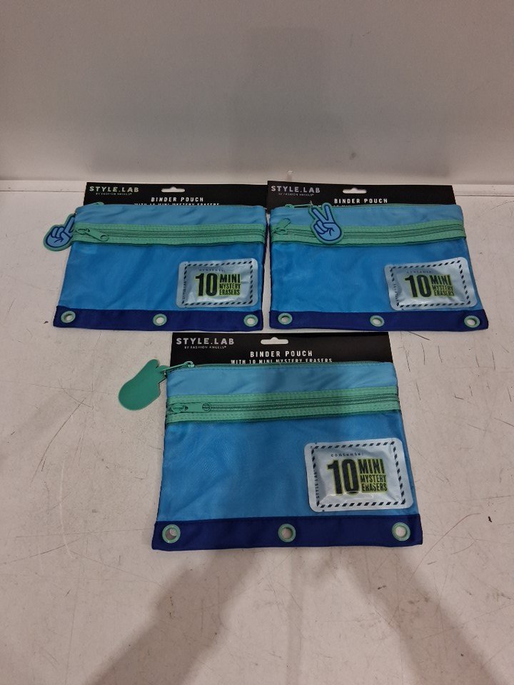 3 STYLE LAB BINDER PUCHES 10 MINI ERASERS - BLUE /GREEN