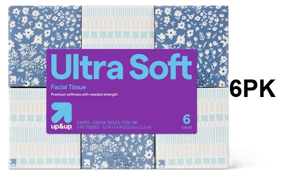 6PK Up&Up Ultra Soft Facial Tissue - Total 390