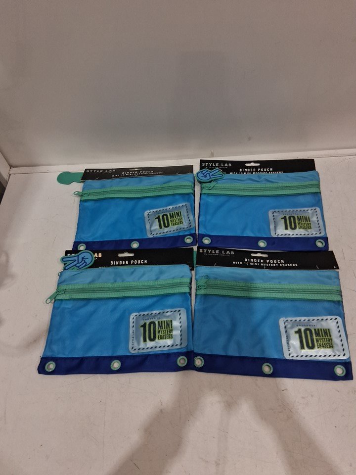 4 STYLE LAB BINDER PUCHES 10 MINI ERASERS - BLUE /GREEN