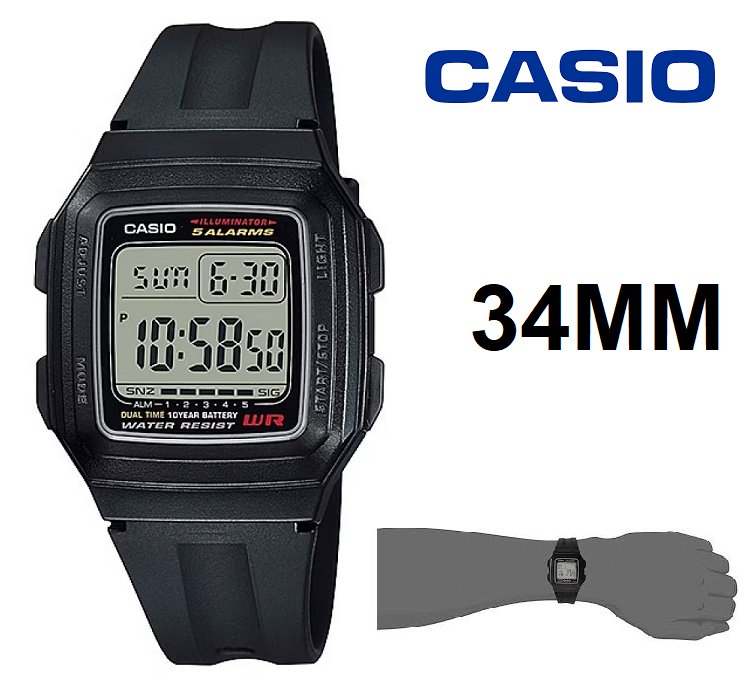 CASIO DIGITAL WATCH - 34mm - black (model: f-201wa-1a)