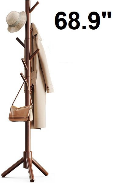sturdy Wooden pine Coat Tree/rack with 8 Hooks and 3 Adjustable Sizes - 68.9" max height - dark brown