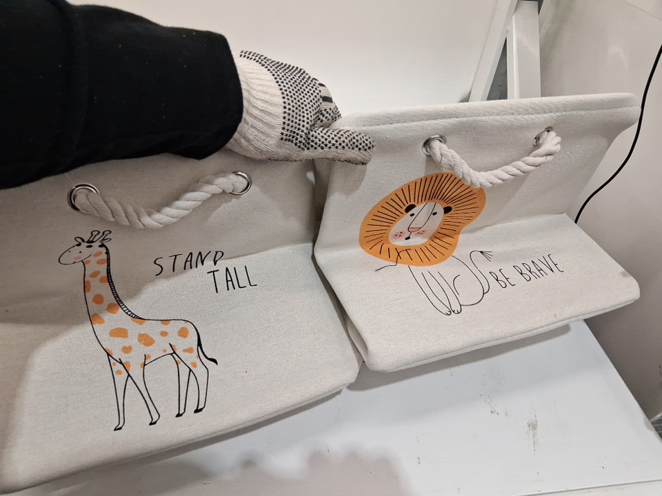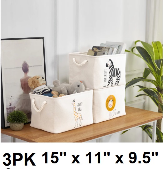 3PK DECOMOMO Toy Storage Baskets - 15" x 11" x 9.5" - Animal Prints / CREAM