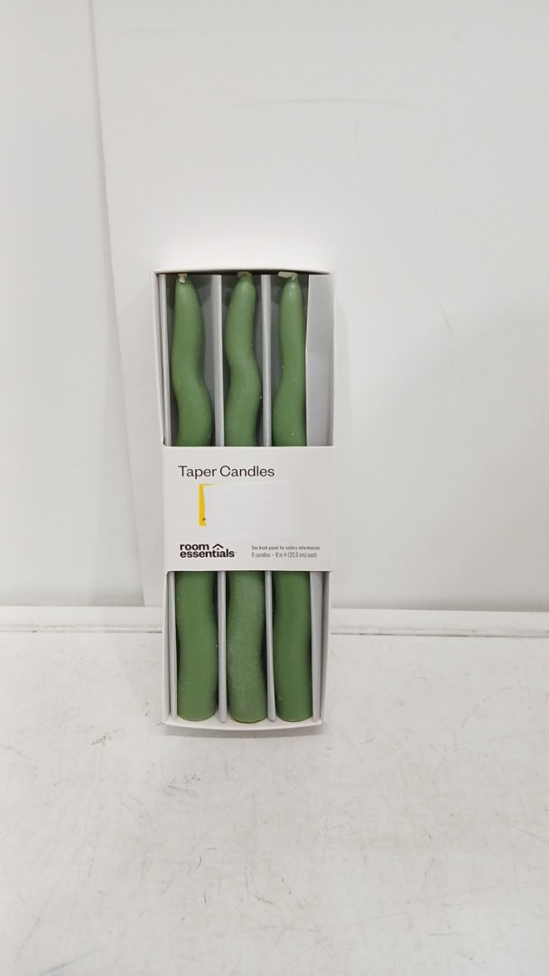 6PK ROOM ESSENTIALS tapered wavy candles sticks - 8" - GREEN