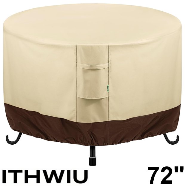 ITHWIU Round Waterproof Outdoor Furniture Covers - 72" x 28" - Khaki/Brown (MODEL: W160)