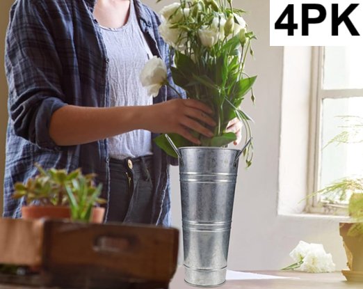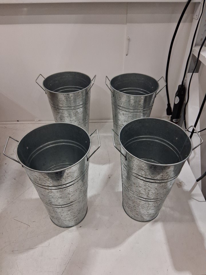 4pk vintage galvanized iron flower buckets - 9'' x 4.3'' - silver