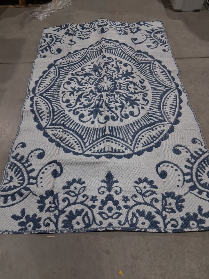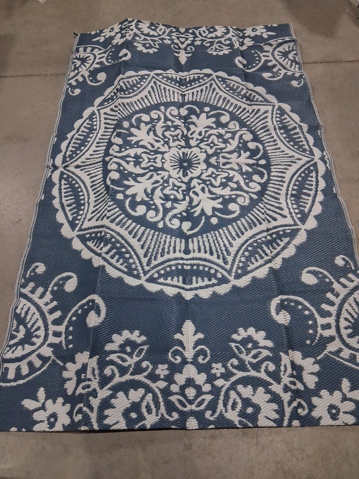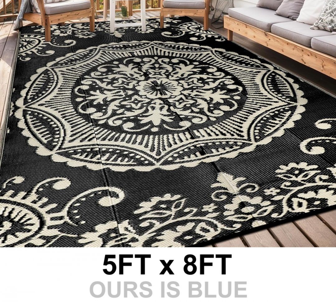 Capsland Outdoor Plastic Straw Reversible Boho Rug - 5FT x 8FT - Blue/White