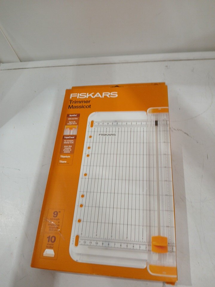 Fiskars SureCut Portable Paper Cutter, Fits in 3 Ring Binder - 9" Cut Length - white
