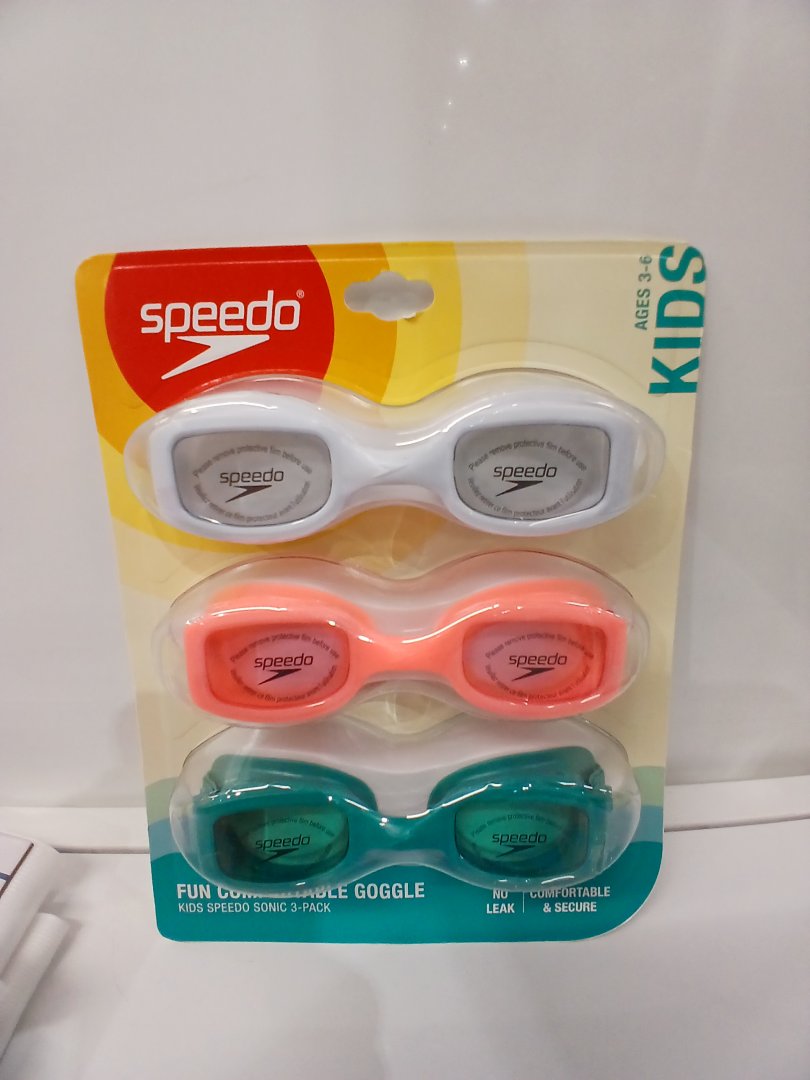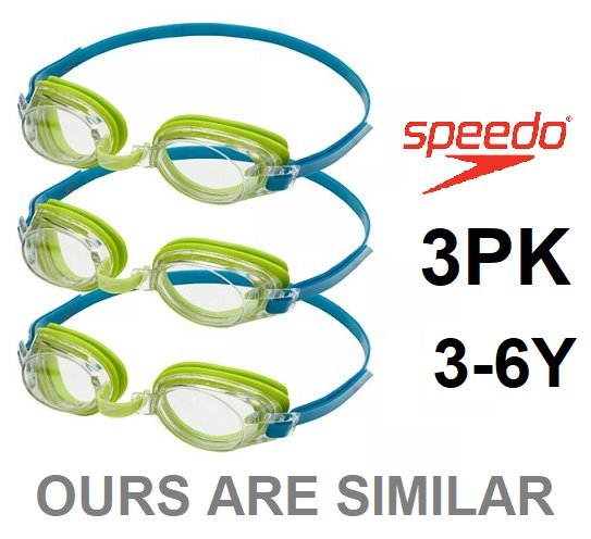 3PK UNISEX SPEEDO KIDS SWIM GOGGLES- ages 3 -6 -white/blue/coral