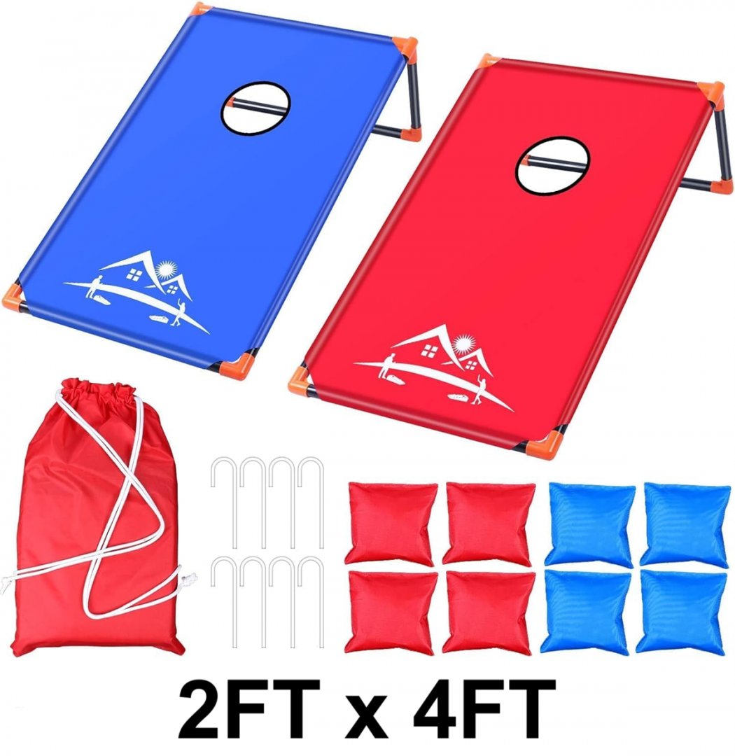 Portable Collapsible CornHole Bean Bag Toss Game Set - 2FT x 4FT - Red/Blue