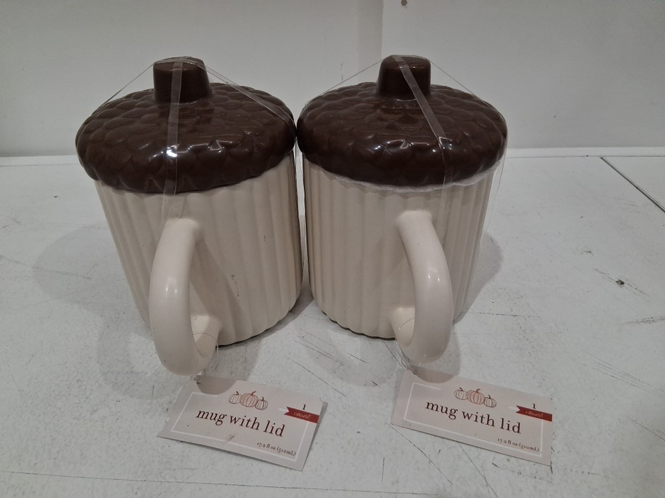 2PK Ceramic Novelty Mug with Acorn Lid - 19FL OZ - Cream/Brown