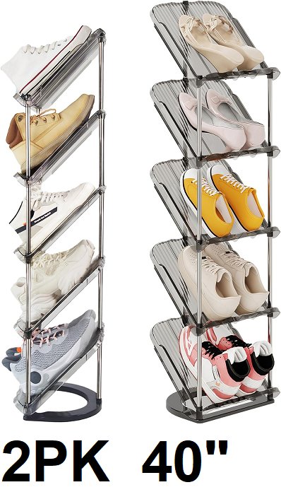 2PK 5 TIER Patinao Sloping Narrow Shoe Rack - 40" - SILVER/BLACK