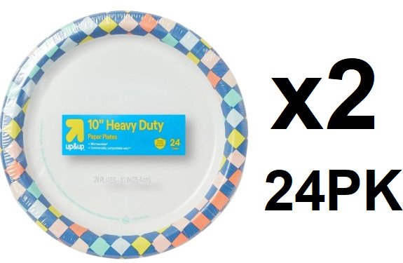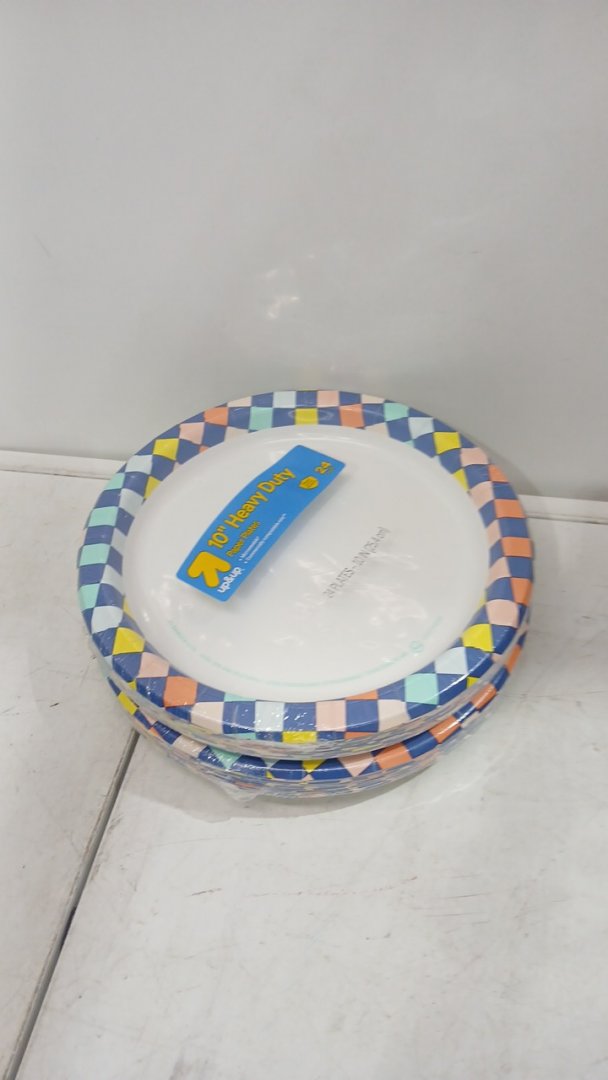 2 (24PK) UP& UP heavy duty paper plates - 10" - multi-colour checkered