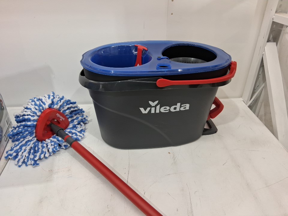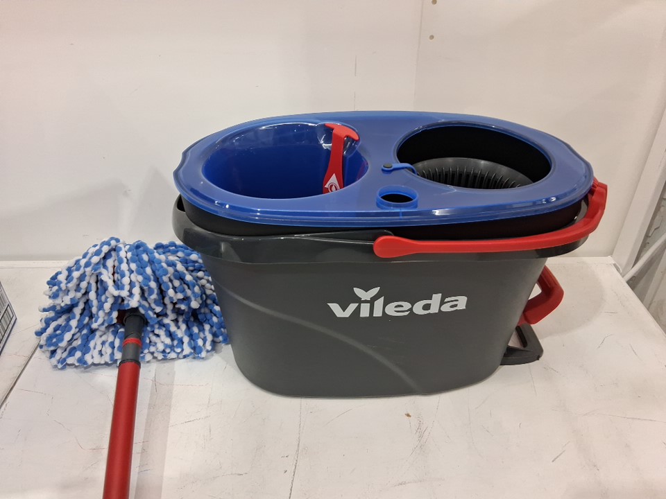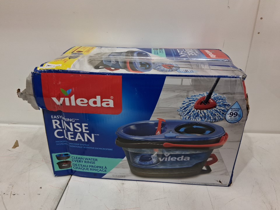 Vileda Easywring Rinse Clean 2 Tank Spin Mop and Bucket System - 22"-36"/36"-48" handle - Blue/Red/Grey