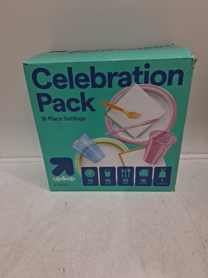 97PC up&up Disposable Table Top Celebration Pack PARTY SUPPLIES FOR 16 PEOPLE -