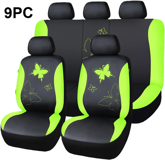 9PC Flying Banner Faux Leather Butterfly car seat Covers - UNIVERSAL FIT - Fluorescent Green/BLACK - (MODEL: ‎FB-077)