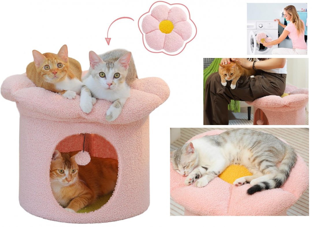 PAWZ Road Flower single layer Cat Bed condo with Washable Top Perch - 15.7" - Pink - (Model: AJ11-AMT0294PK)