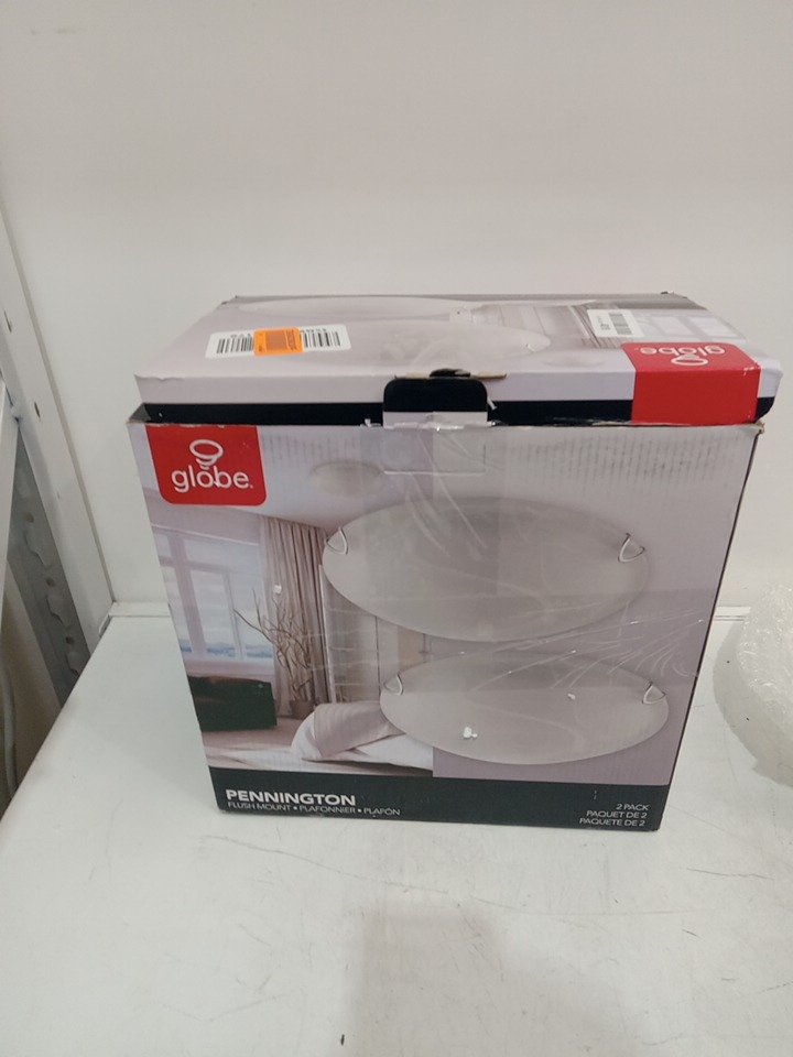 2pk globe electric Pennington flush mount ceiling light fixture with glass shade - 10" - frosted white alabaster (model: 65188)
