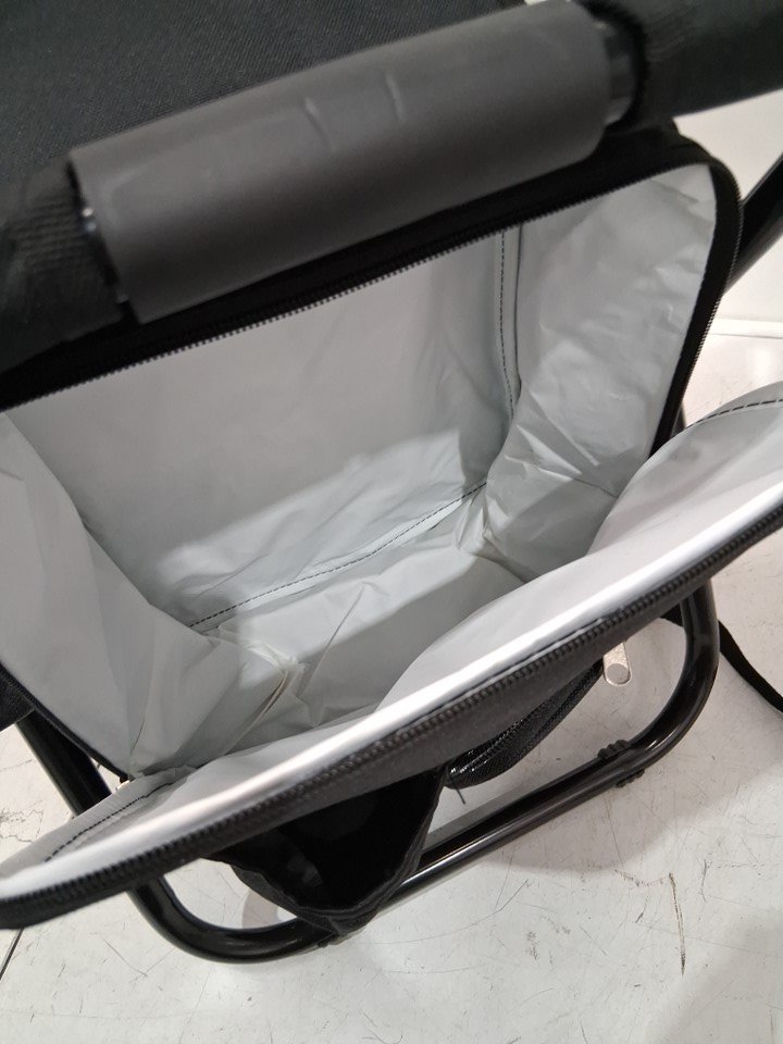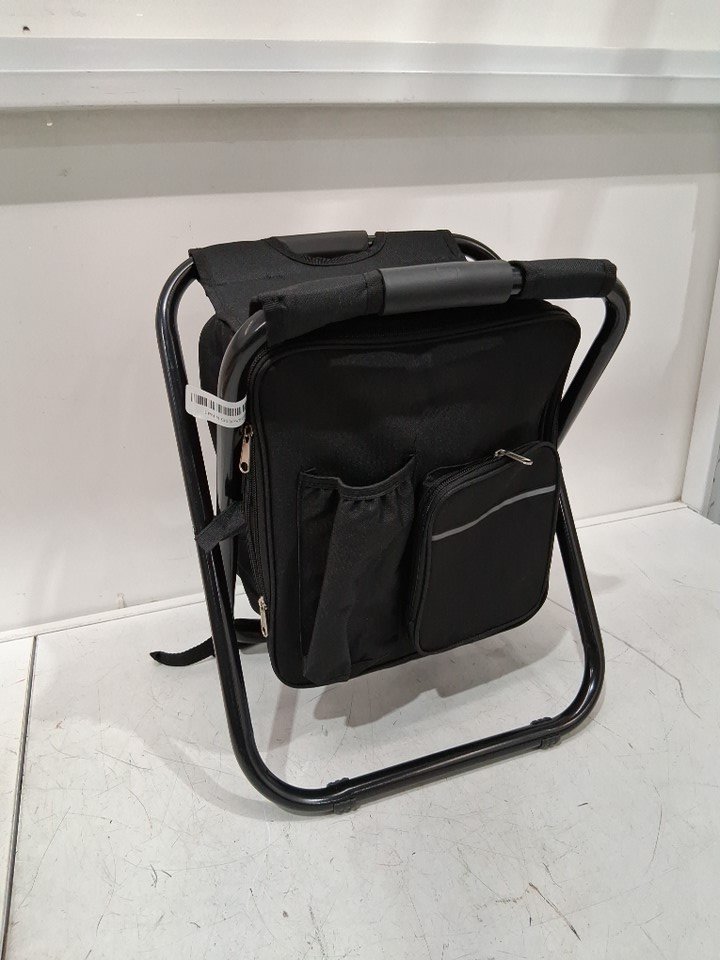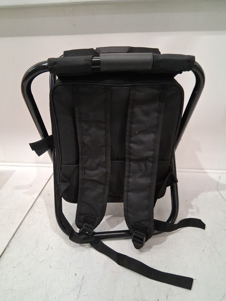 camping Folding Stool Insulated Cooler Bag Backpack - black