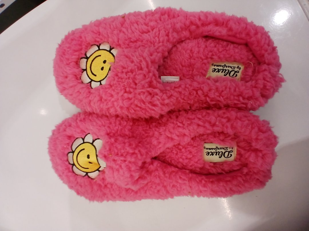WOMENS Dearfoams Daisy Smiley Slide Slippers - LARGE 9-10 - PINK