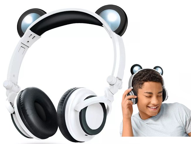 ART+SOUND LED Light Up Panda Bluetooth Wireless / Wired Headphones - BLACK/WHITE