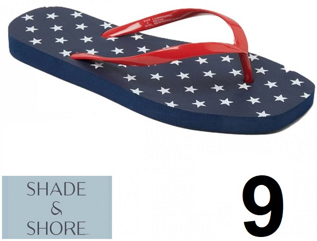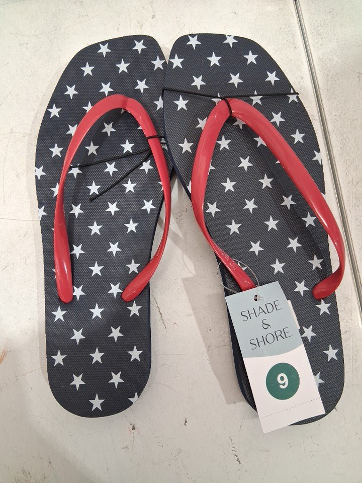 Women's Shade & Shore Americana Palmer Square Toe Thong Flip Flops - Size 9 - Navy Blue/White Stars
