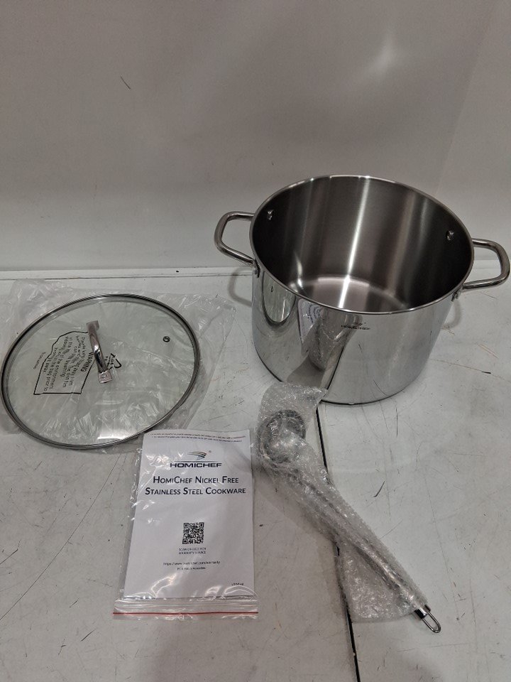 HOMICHEF Stock Pot with Glass Lid AND ladle - 12QT - Silver - (Model: ‎701A12)