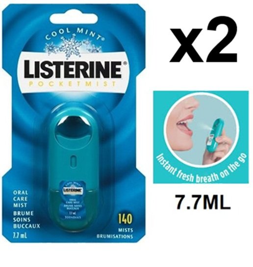 2 (140 mist) listerine pocketmist oral care mist- cool mint - 7.7ml/each