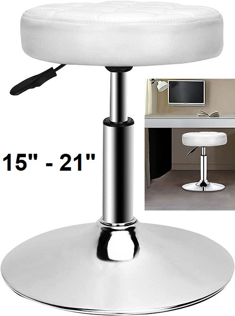Round Modern bar Stool Height Adjustable 360 Swivel Stool - 15" - 21" height adjustment - white