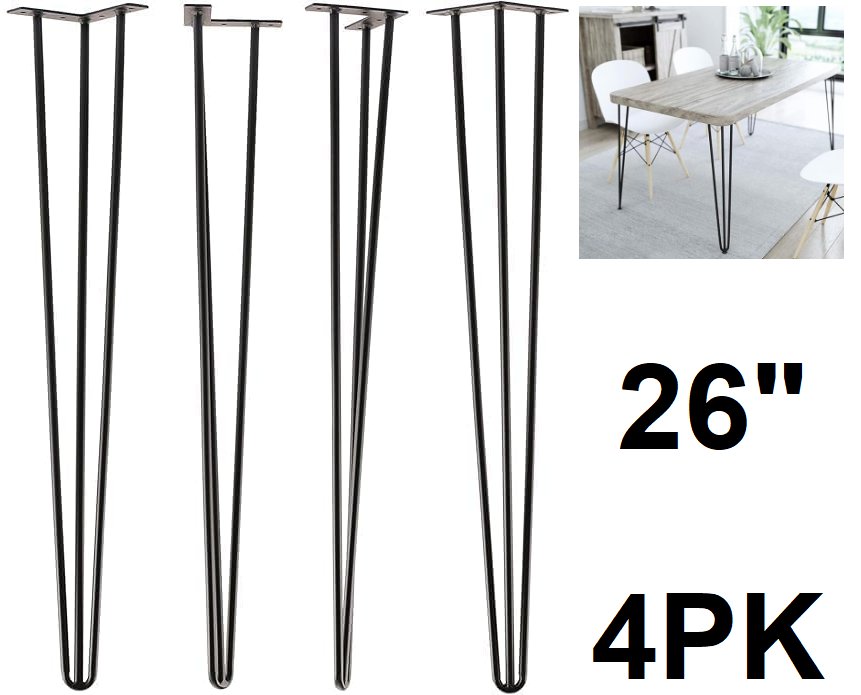 4PK Hairpin Table Legs - 26" - BLACK - (MODEL:‎AMZ-ZT)
