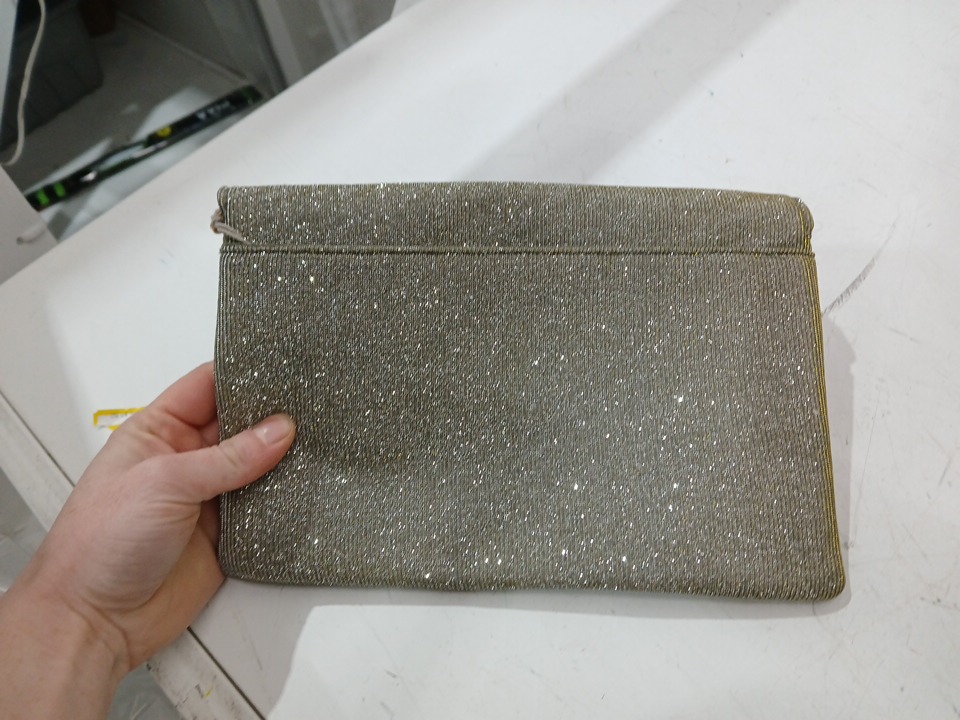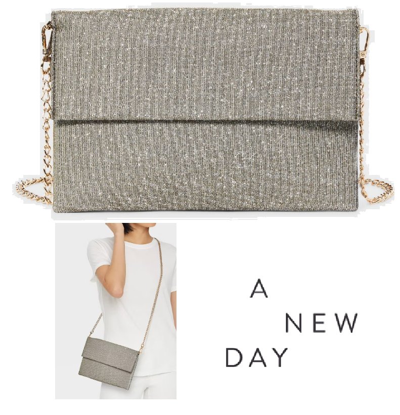 womens' A New Day Flap Clutch Bag - metallic sparkle