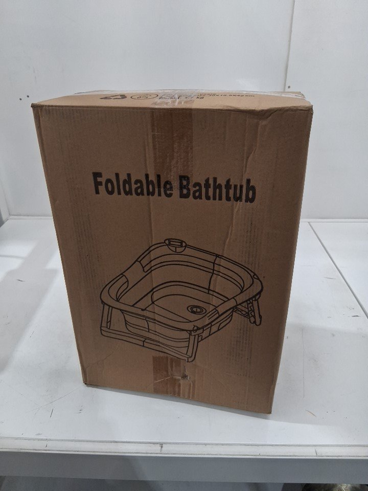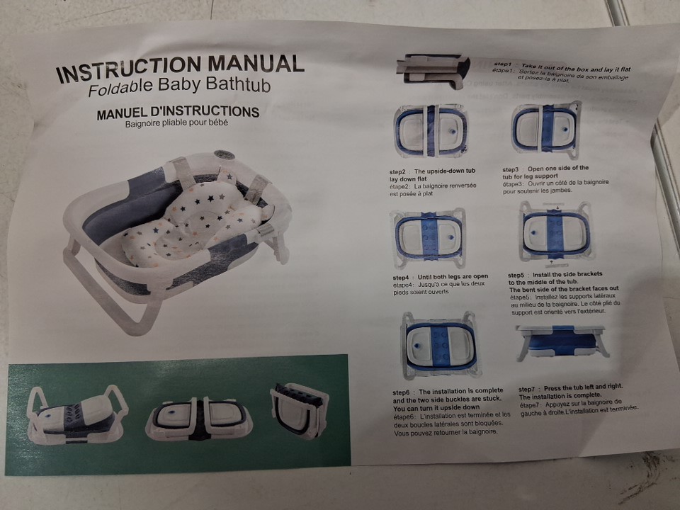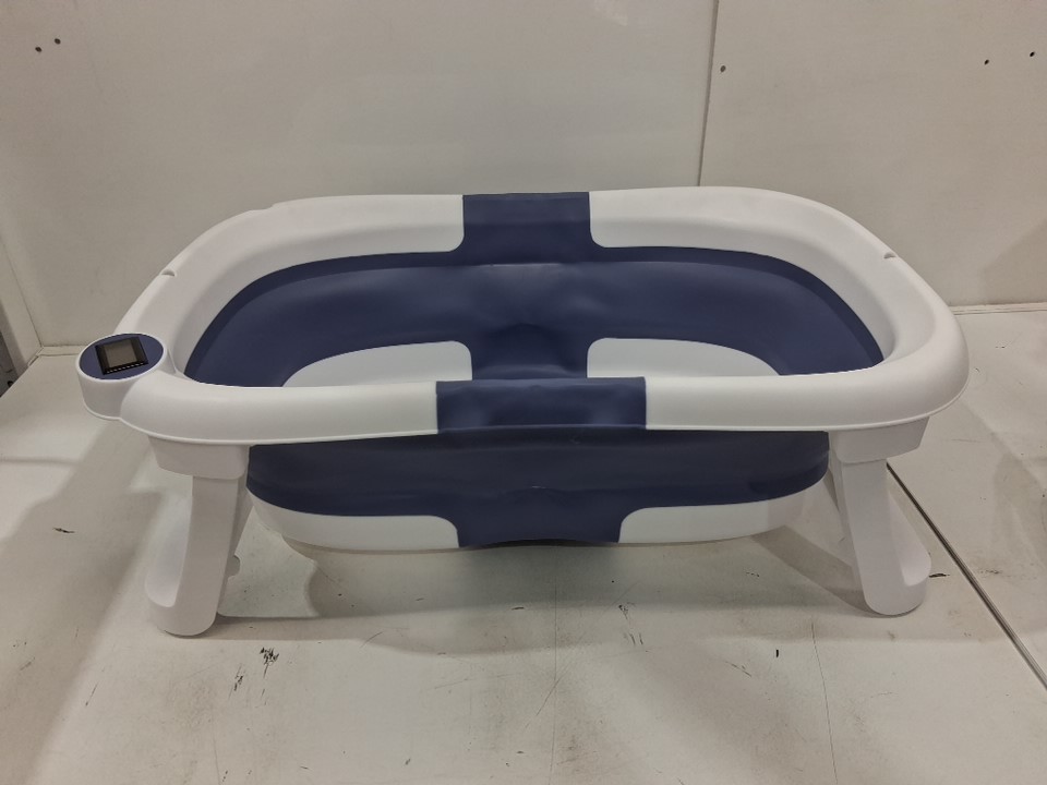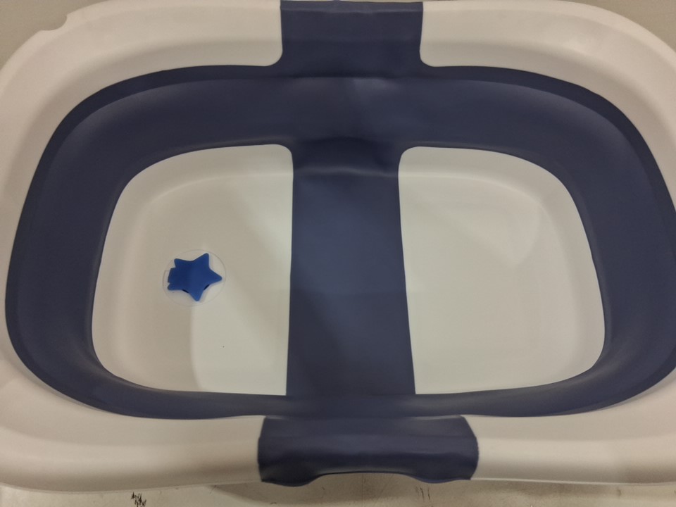 Soobaby 4-in-1 Foldable Baby Bathtub Ear Cap and Soft Cushion with Temperature Sensor - 33" x 22" x 10.6" - white/blue (model: YP-A01)