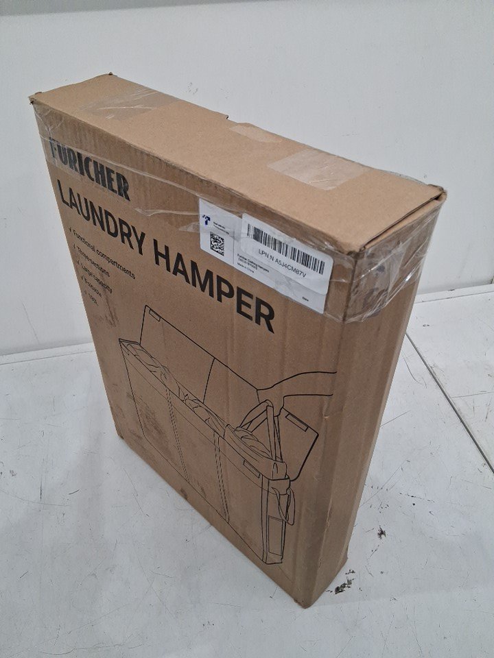 Furicher Large 3 Section Laundry Basket with 3 Removable Bags - 190 Litres Total - Black