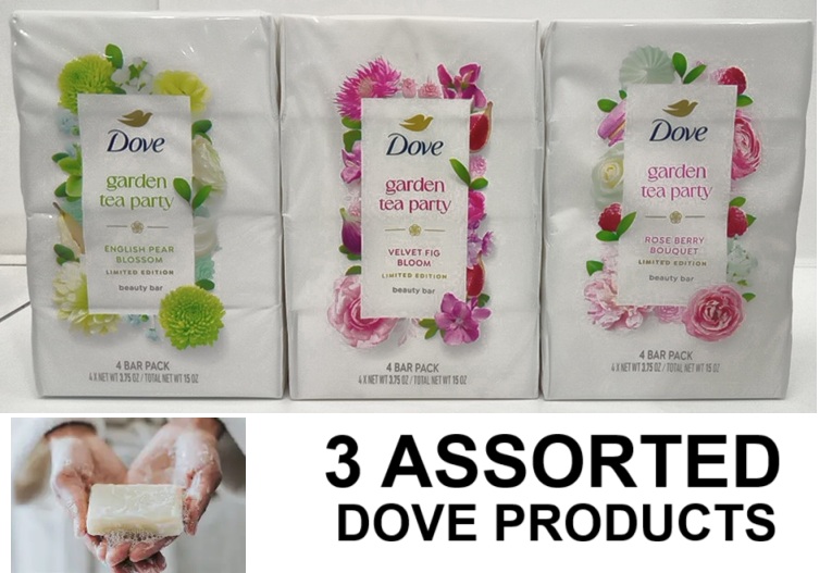 3 ASSORTED DOVE PRODUCTS - velvet fig bloom/ rose berry bouquet/english pear blossom