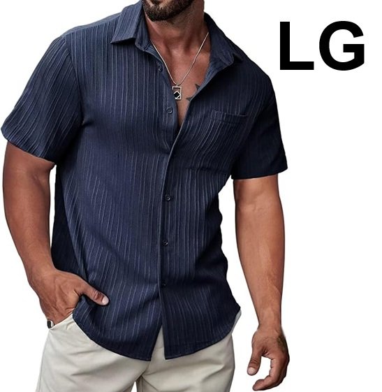 men's JMIERR Hawaiian Textured Casual Solid Color Button Up Shirt - LARGE - navy blue