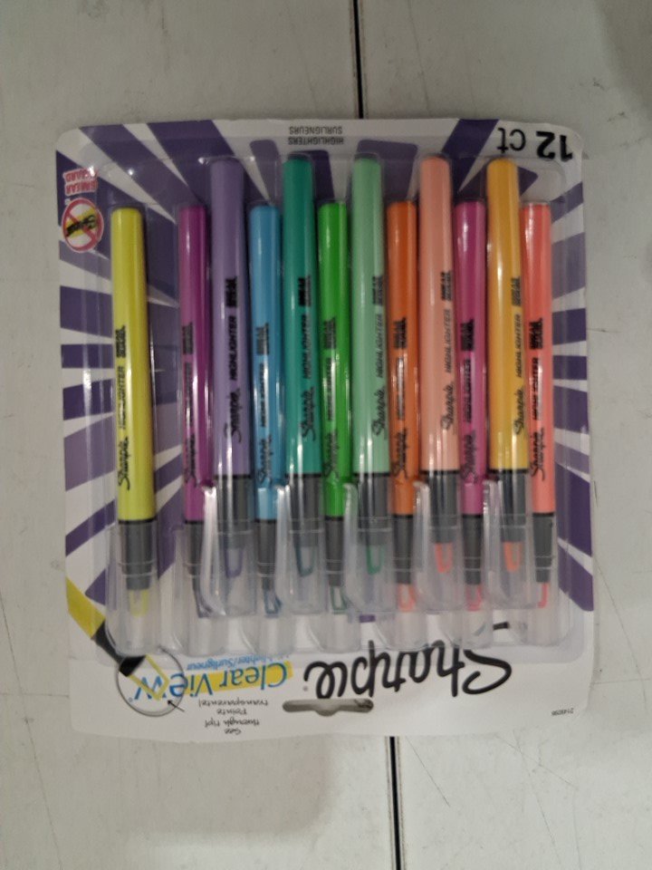 12PC Sharpie Clear View Highlighter with See-Through Chisel Tip Stick - Assorted Colors - (Model: 215316)