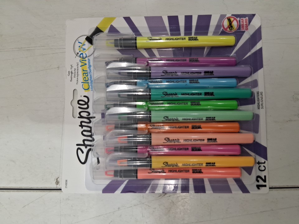 12PC Sharpie Clear View Highlighter with See-Through Chisel Tip Stick - Assorted Colors - (Model: 215316)