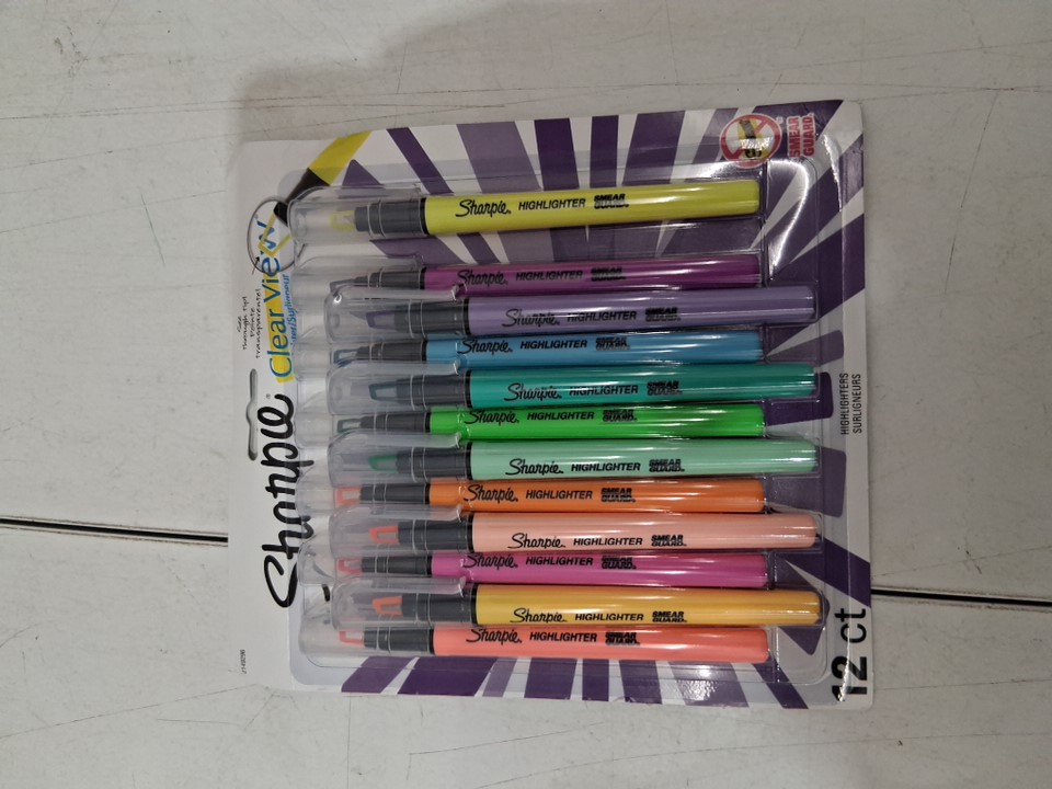 12PC Sharpie Clear View Highlighter with See-Through Chisel Tip Stick - Assorted Colors - (Model: 215316)