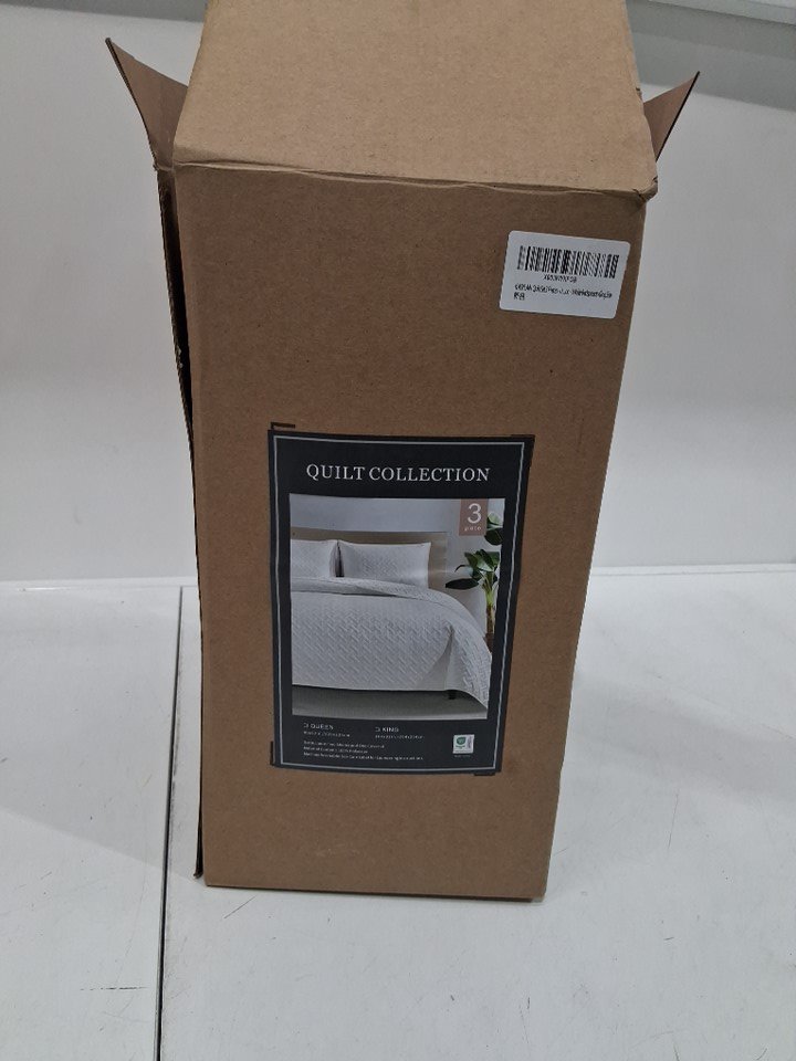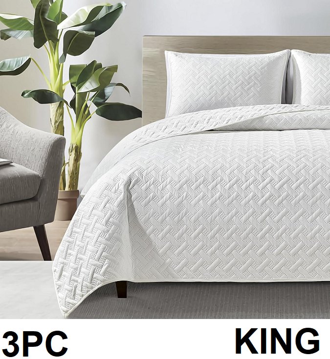 3PC KASYLAN Quilt Set - Ultra Soft Quilted Coverlet Bedspread - Lightweight Microfiber Classic Weave- KING - WHITE