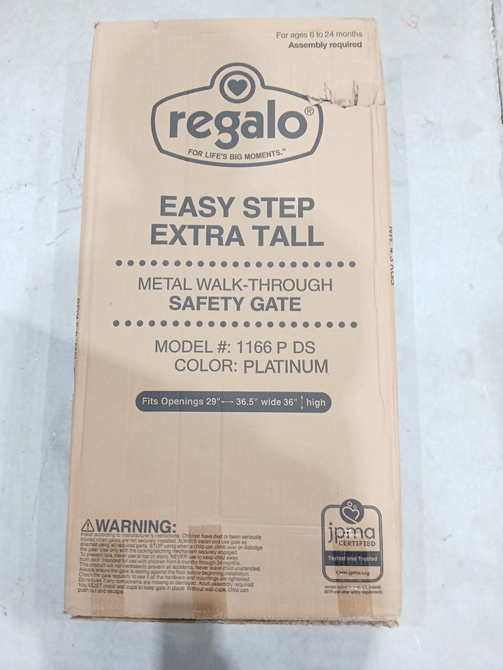 Regalo Easy Step Extra Tall Walk Thru Baby Gate - 29" to 36.5" x 36" - platinum grey (MODEL: 1166PDS)