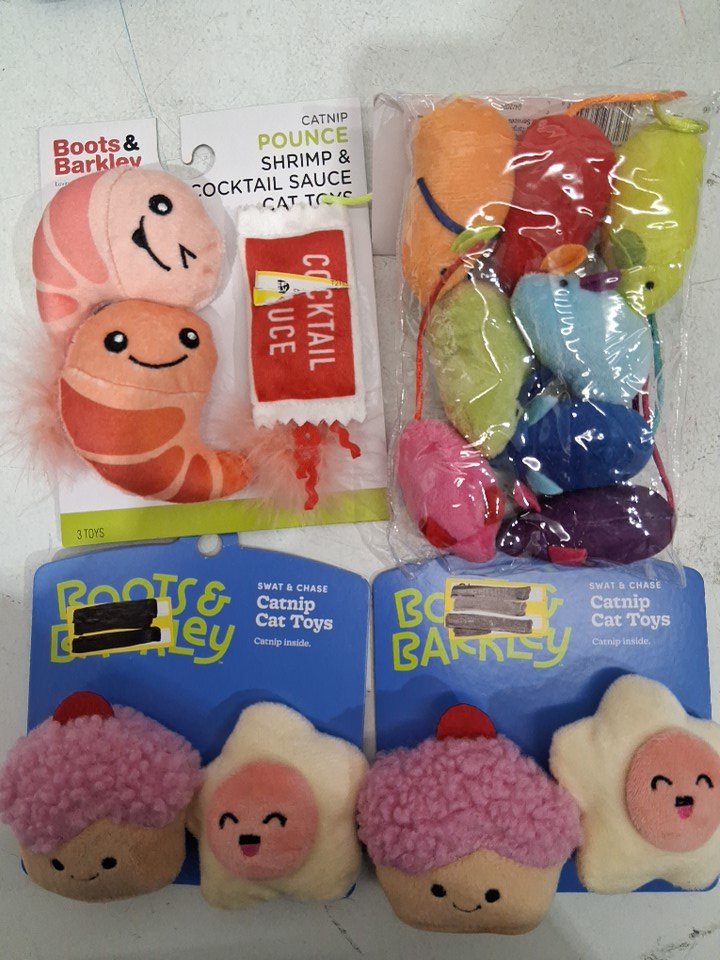 4 ASSORTED BOOT & BARKLEY CAST TOYS - shrimp / cupcake / mice and more