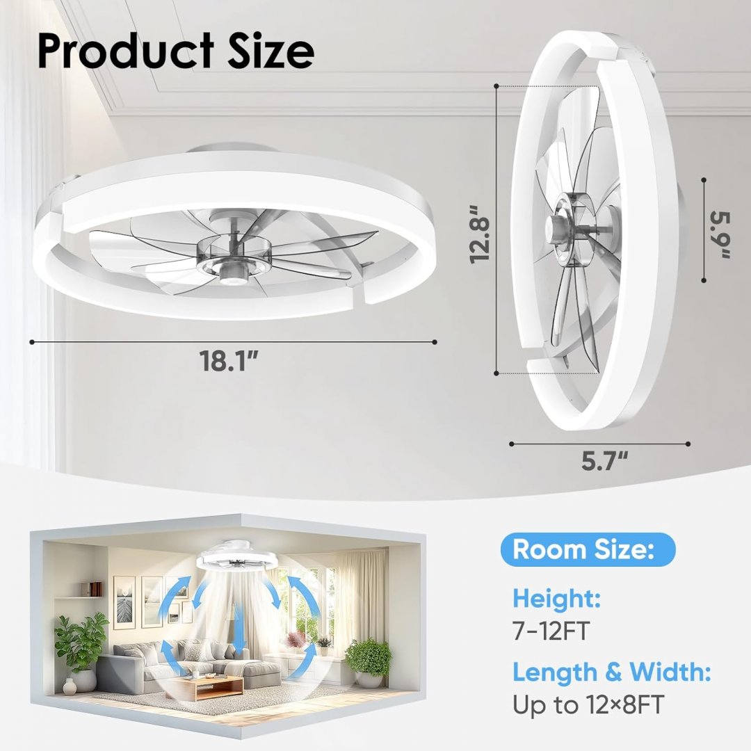 ropelux Ceiling Fans with Lights - app and remote control - 3000-6000K - 18" - white