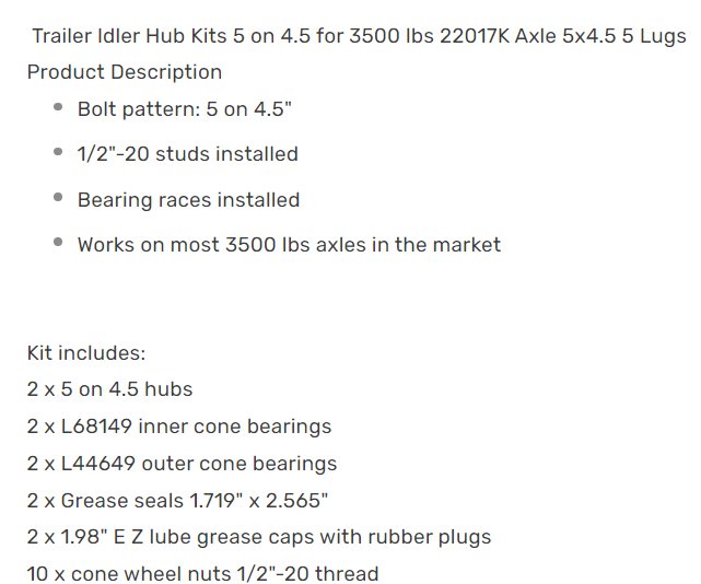 2PK JA Auto USA Trailer Idler Hubs - 5 Bolt Pattern on 4.5" Hubs - Up to 3500LB Axle Support (Model: RBT-5X45H-2K)