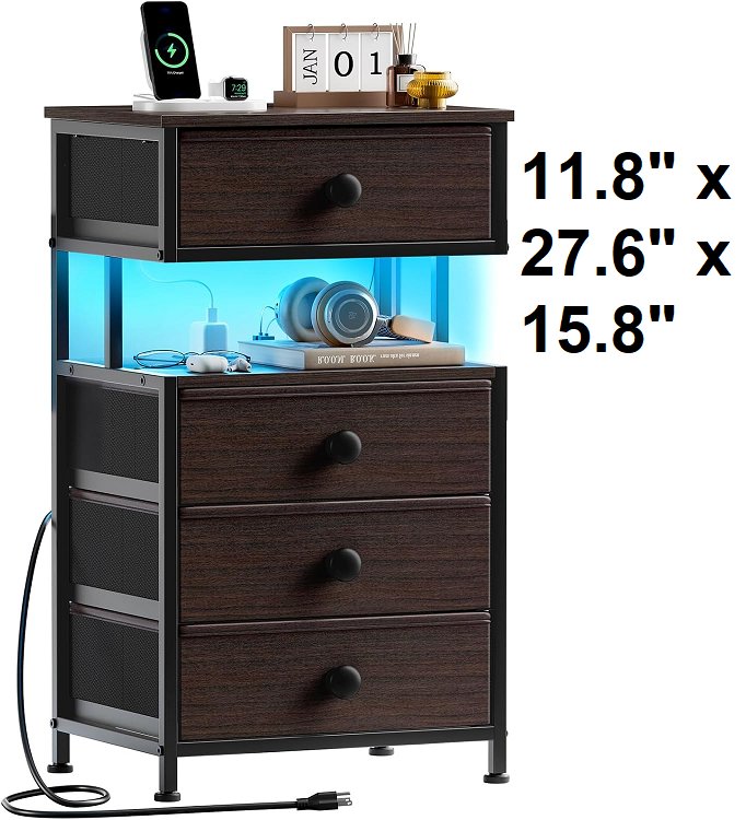 Reahome night stand with charging station and led lights - 4 drawers - 11.8" x 27.6" x 15.8" - Brown/black