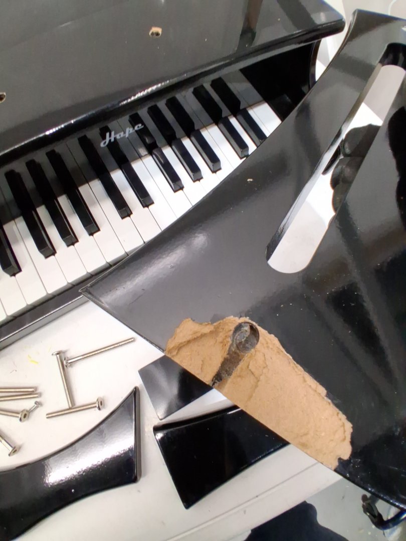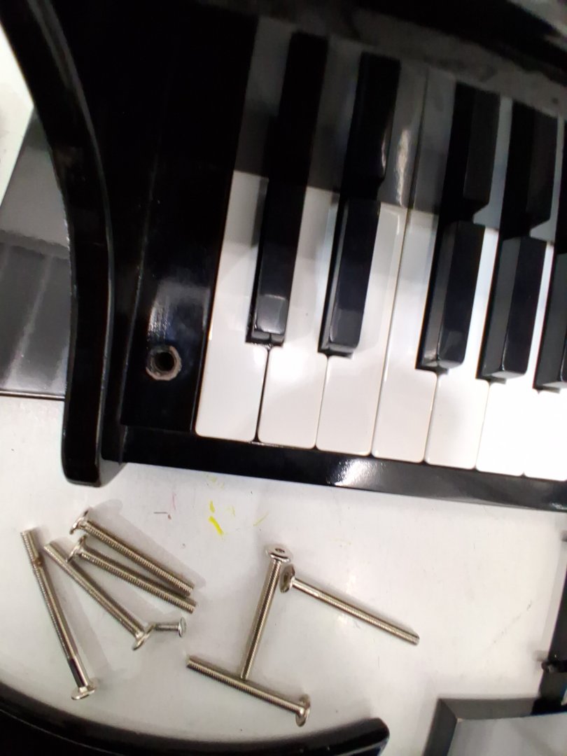Many parts of the unit are scuffed, piano works. one part pf the piano appears to have major cosmetic issue.