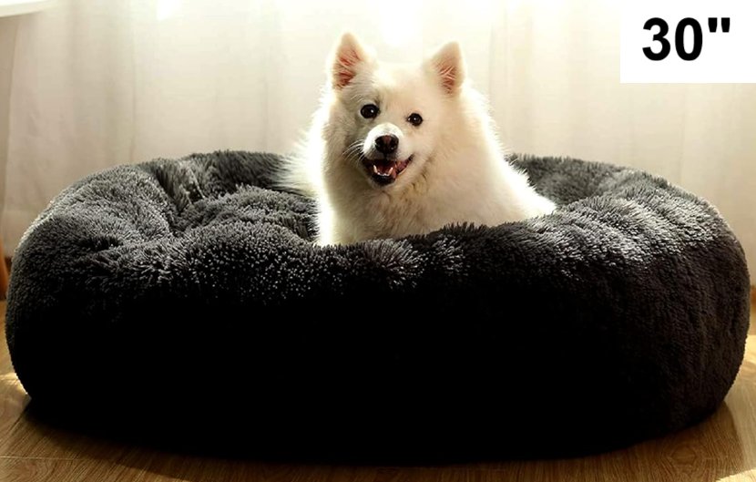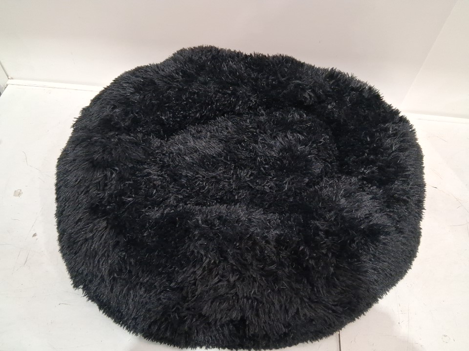 nononfish fluffy faux fur round dog bed non-slip bottom - 30" - black