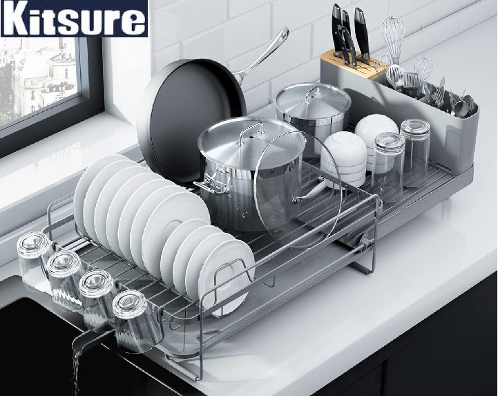 Kitsure Extendable Stainless Steel Large Dish Drying Rack - 26.69" x 12.91" x 5.90" - grey