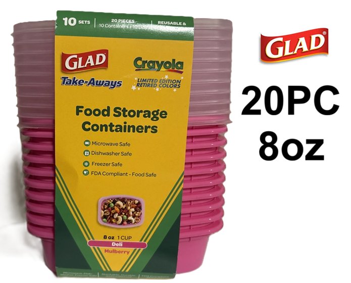 20PC GLAD CRAYOLA FOOD STORAGE CONTAINERS - 8OZ - pink